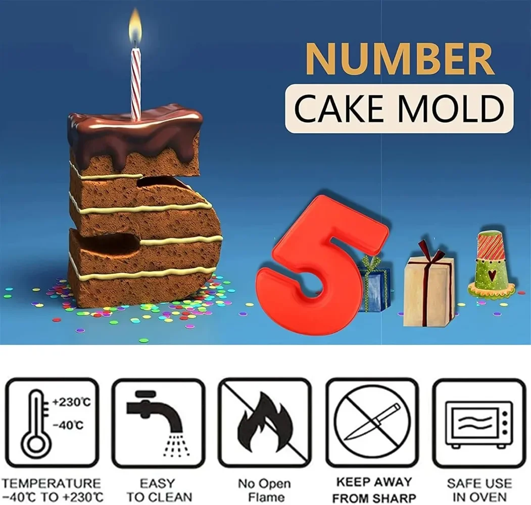 10in 3D Large Number Cake Mold 0 - 8 Silicone Baking Pans for Birthday Wedding Anniversary Party Decorations DIY Home Baking Tools - drollido