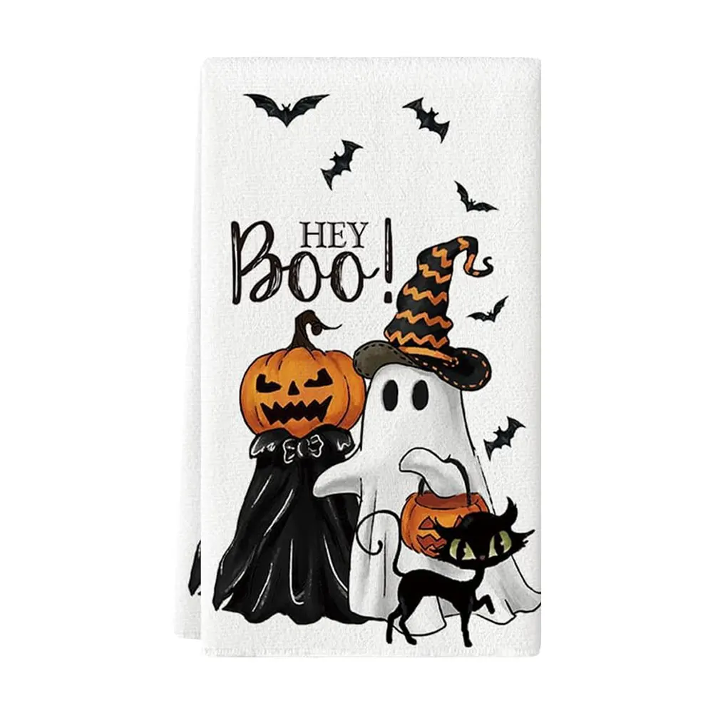 These Boo Halloween Kitchen Towels are crafted from 100% microfiber, offering softness that protects your cookware and dishware. Measuring 40x60 cm, they are highly absorbent and maintain effectiveness even after repeated machine washing and tumble drying. Ideal for drying, cleaning, or scrubbing tasks, these durable towels come in black or white Halloween-themed designs, adding festive charm to your kitchen while providing reliable everyday performance.