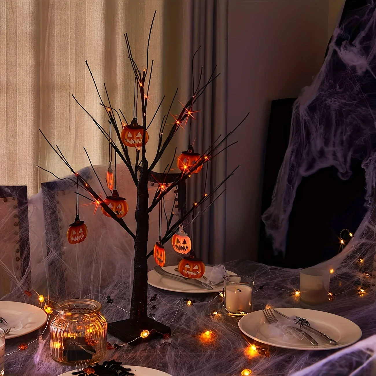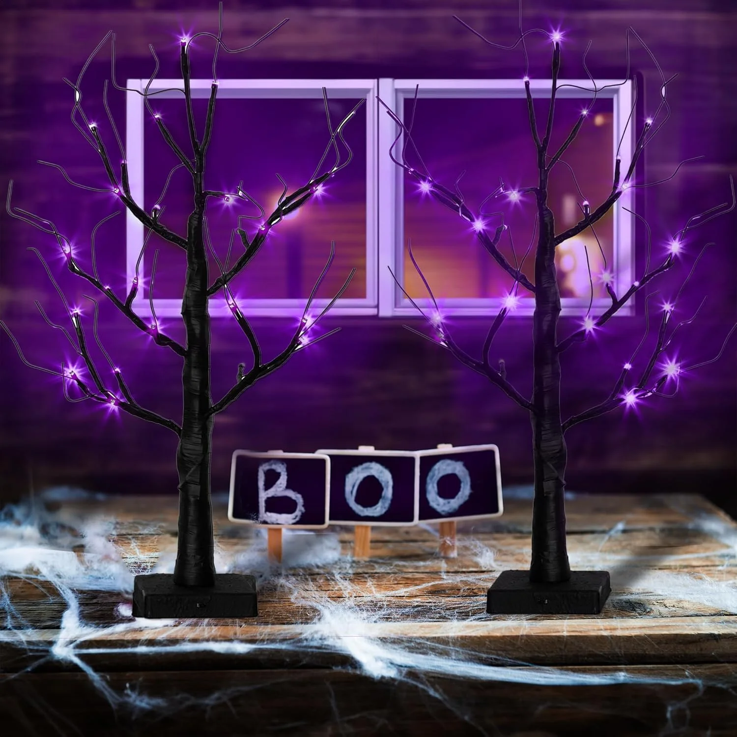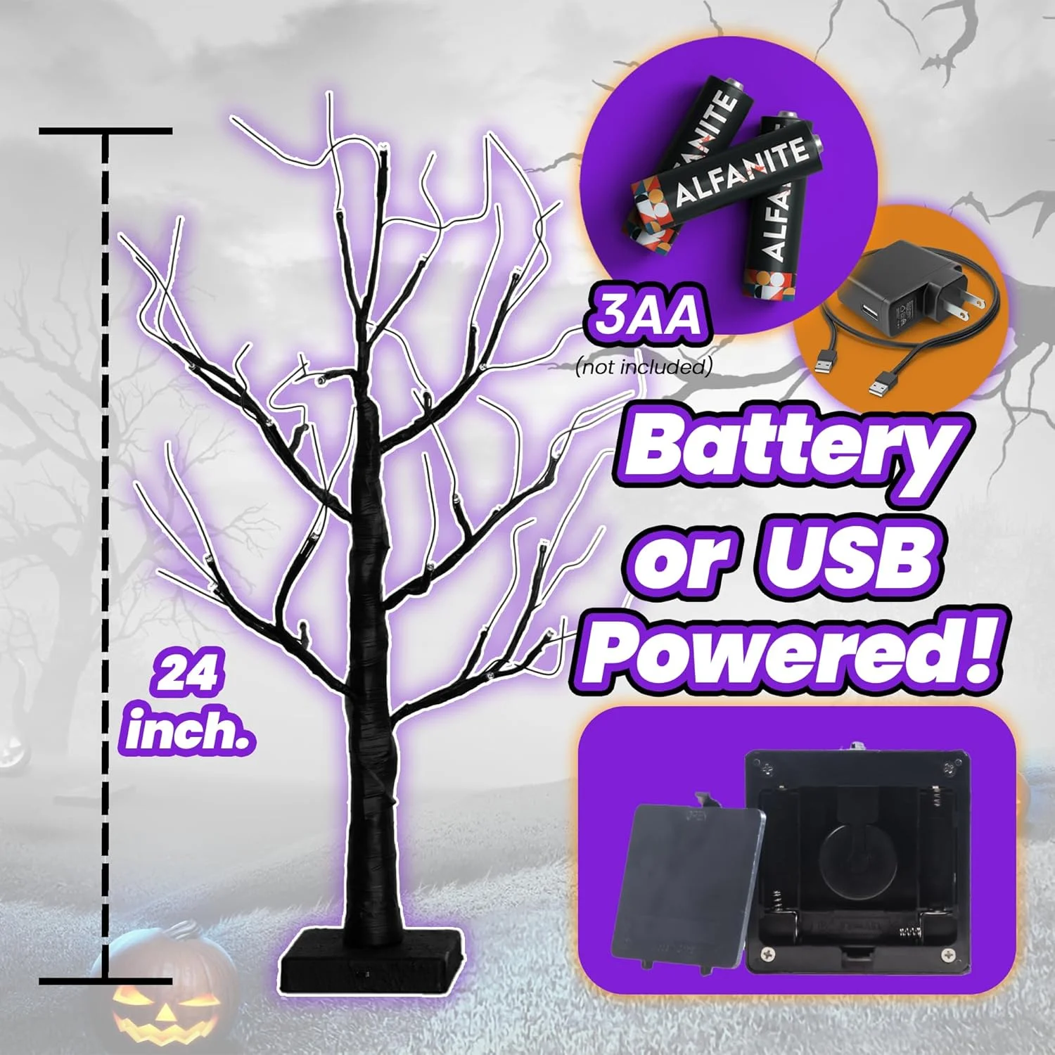 1pc Orange/Purple Glowing Halloween Birch Tree Light with 24L Black Branch Table Lamp Battery&USB For Indoor Holiday Decoration - drollido