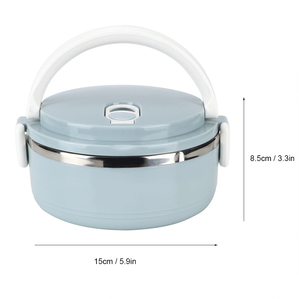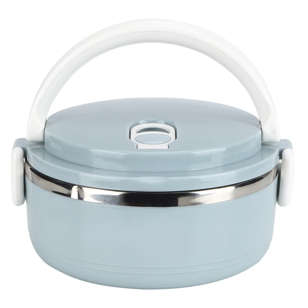 This portable lunch box features a high-quality stainless steel liner that’s polished for easy cleaning. Equipped with an air vent that seals airtight for freshness and safety buckles on both sides to keep the lid securely in place, it ensures your meals stay intact throughout the day. Made from food-grade stainless steel and PP, it’s non-toxic and eco-friendly. Its ergonomic handle makes carrying simple, whether at work or on the go. Designed primarily for rice and solid foods, this blue lunch box offers reliable sealing and convenient use for everyday meals.