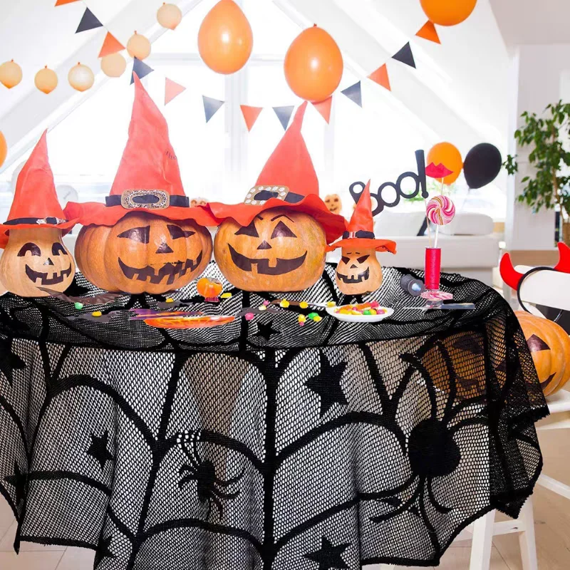 Creative Black Lace Tablecloth, Halloween Tablecloth, Spider Web Fabric, Fireplace Scarf, Household Items, Home Decor - drollido