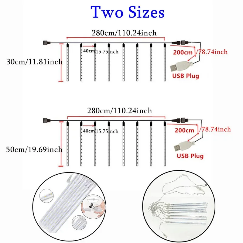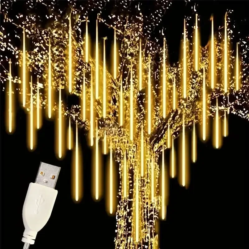 Party Decorations Street Light USB Meteor Shower Rain LED Fairy String Lights Festoon Wedding Christmas 2026 Ramadan Decorations - drollido